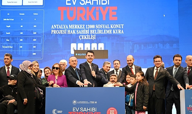 Antalya’da yapılacak 13 bin 213 sosyal konut için kura çekimi Mimar Sinan Kongre Merkezi’nde düzenlendi. Çevre, Şehircilik ve İklim Değişikliği Bakanı Murat Kurum’un da katıldığı tören, çok sayıda hak sahibi adayının yoğun ilgisiyle gerçekleştirildi
